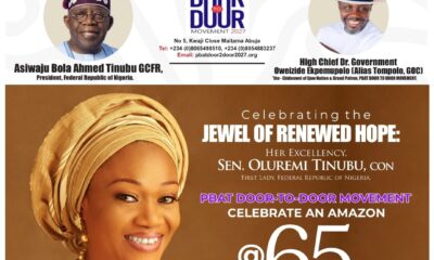 The PBAT Door-to-Door Movement, led by its Grand Patron, High Chief Government Oweizide Ekpemupolo (alias Tompolo, GOC), has congratulated Nigeria’s First Lady, Senator Oluremi Tinubu (CON),...